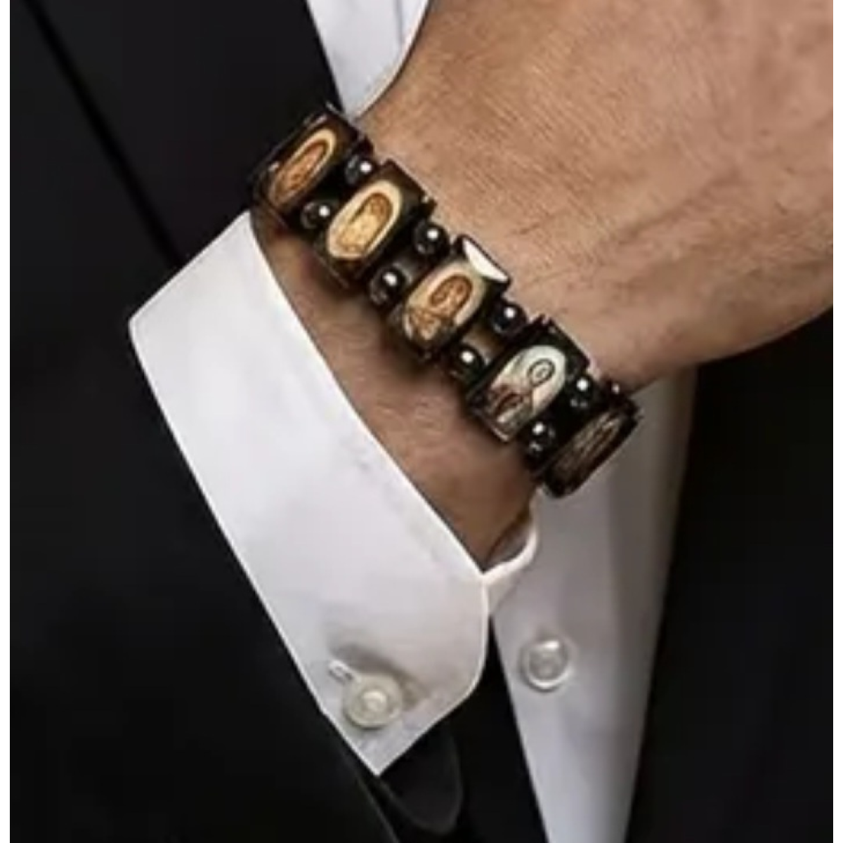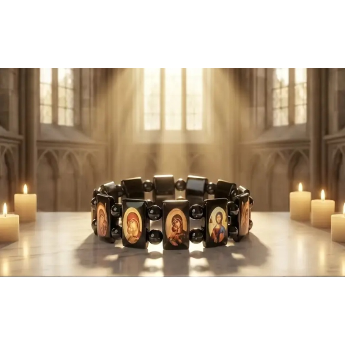 Брослет гематитовий з ліками святих. В упаковці 12шт.