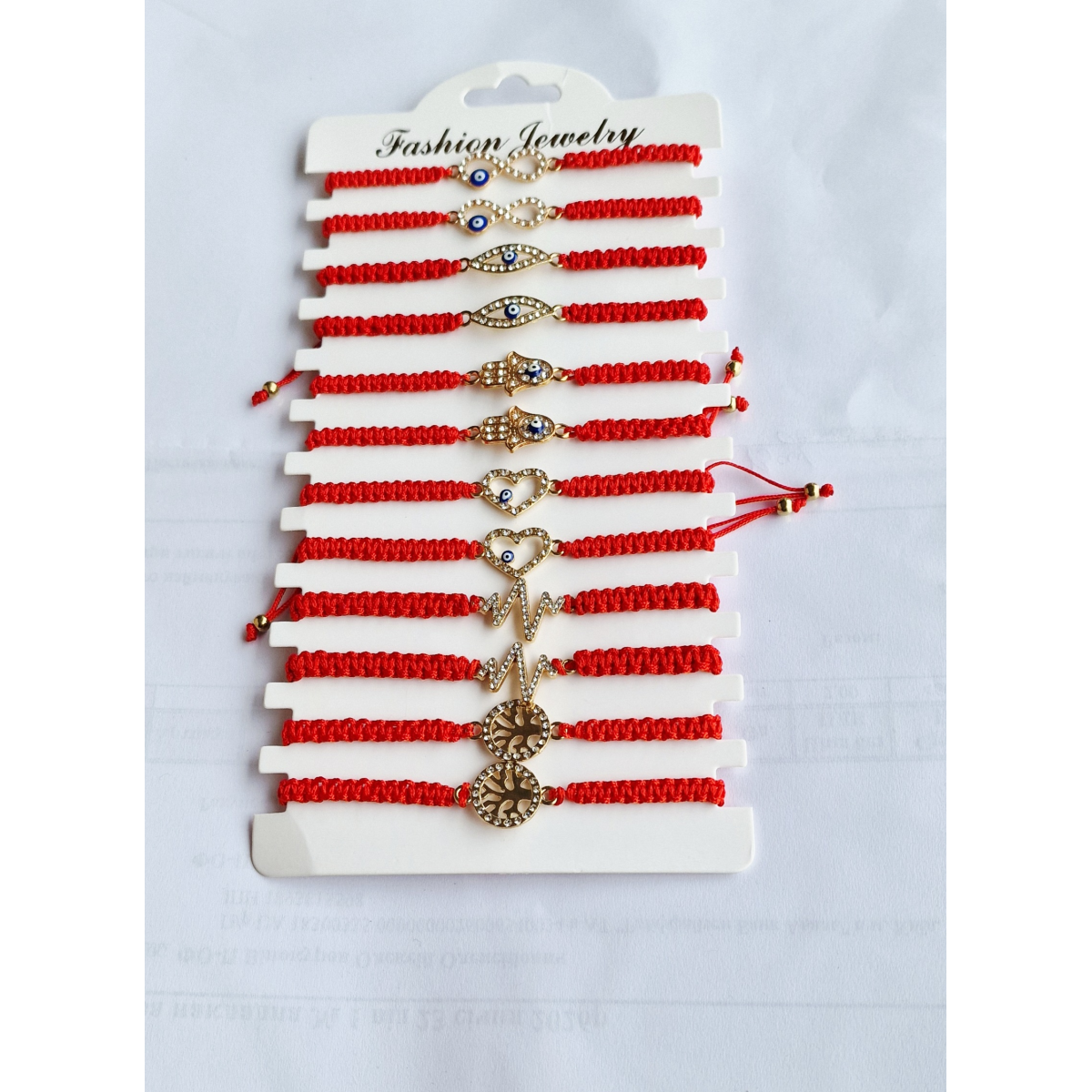 Брослет з червоної нитки з різними кулонами