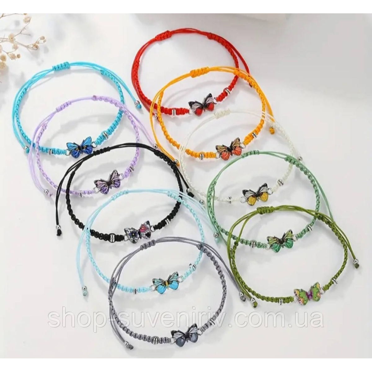Брлслет на руку плетений різнокольоровий з Метеликом
